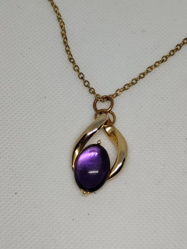 Gorgeous purple glass gem with a twisted gold filled stainless steel accents. A pretty simple concept with a shine.