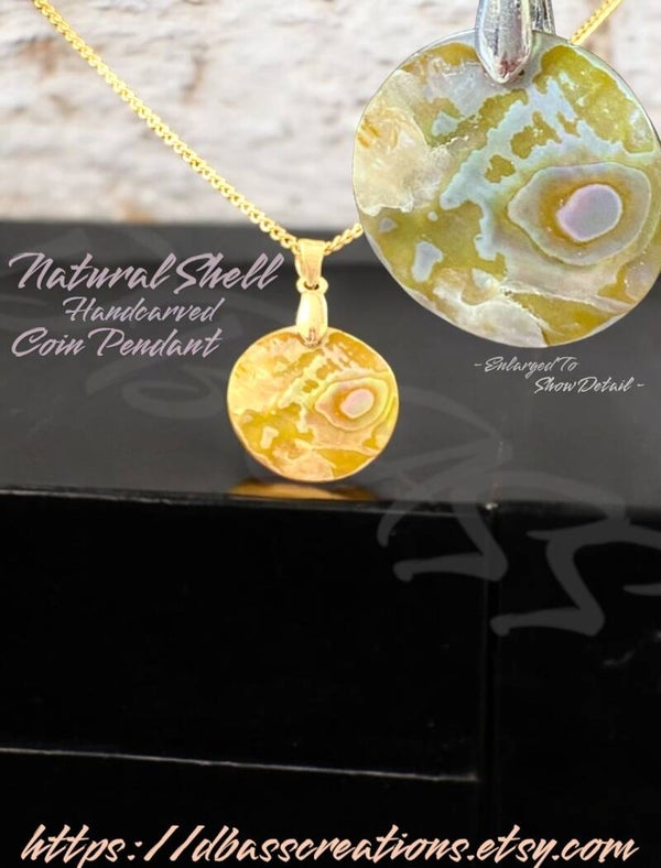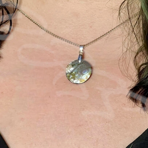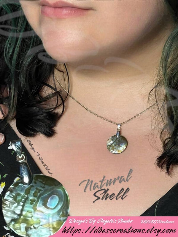 This Abalone Shell Necklace is hand made, hand carved out of the inside of a real abalone shell, hand drilled and polished.