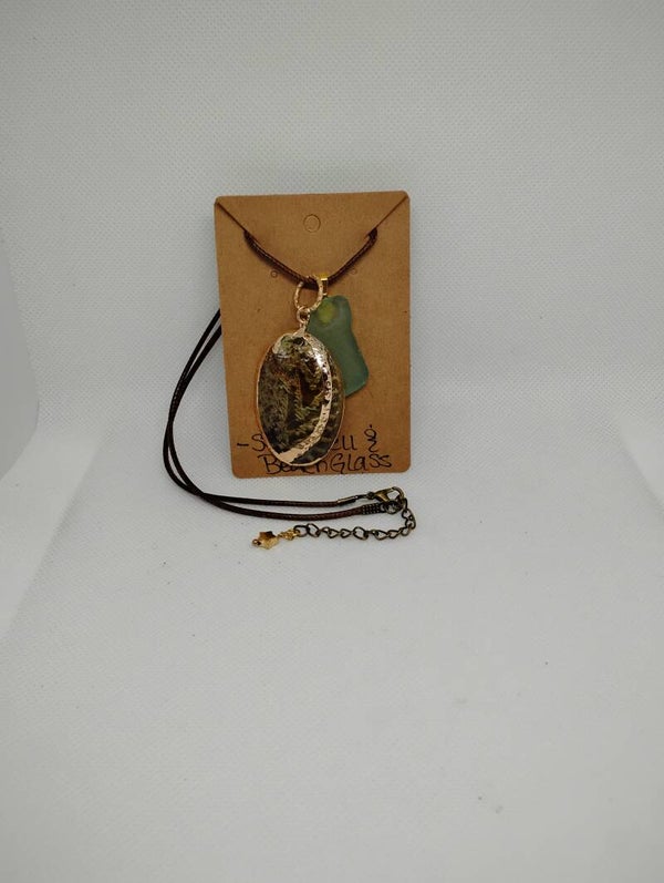 Stone/Pendant Type: Sea Glass & Shells Chain Type: Leather Cording Chain Length: 18" Clasp Type: Lobster Claw Closure Extender Chain: Yes Dimesions: 2.5" long x 1.75" wide Total Drop Length: 10.5" - 13.5" w/extender chain