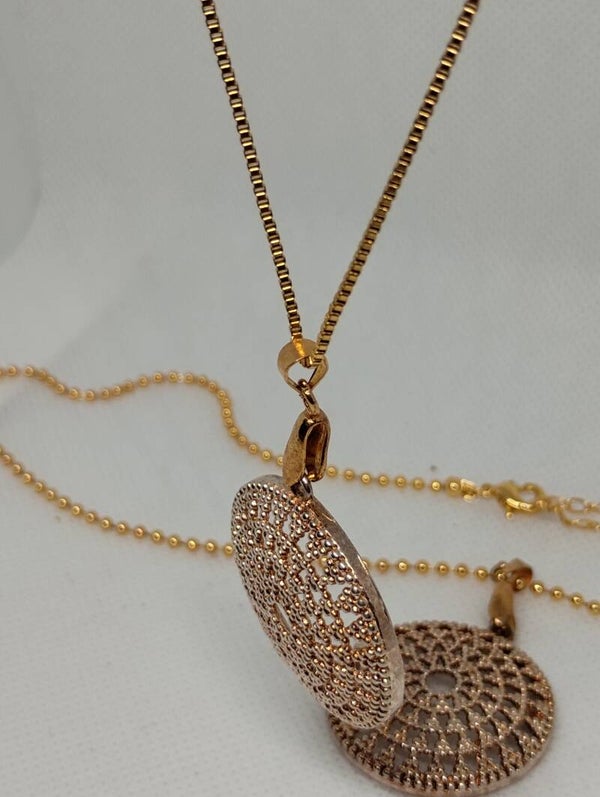 Stone/Pendant Type: 10K Gold overlayed on Stainless Steel Chain Type: 14K Gold Ball Chain Chain Length: 20" Clasp Type: Lobster Claw Closure Extender Chain: NO Dimesions: 1.75" long x 1.75" wide Total Drop Length: 11.75"