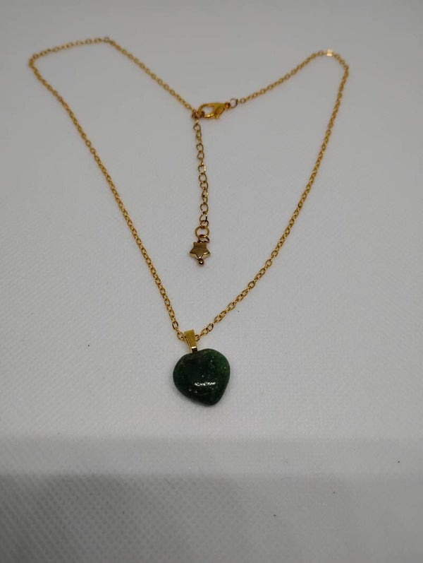 This Pendant Necklace features a small pure Green Jade semi precious gemstone that has been hand carved into a puffed heart.