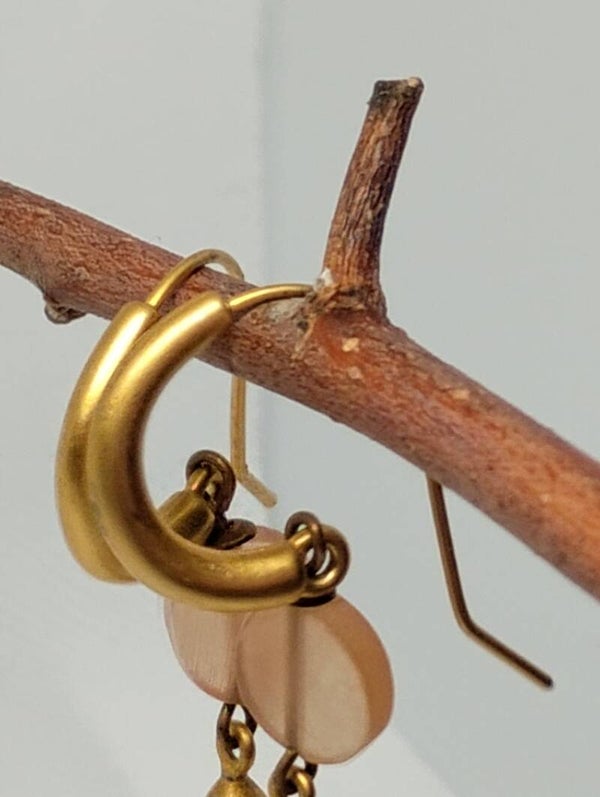 Goldish Bronzed Dangle Earrings with a frosted glass bead for that vintage styled look