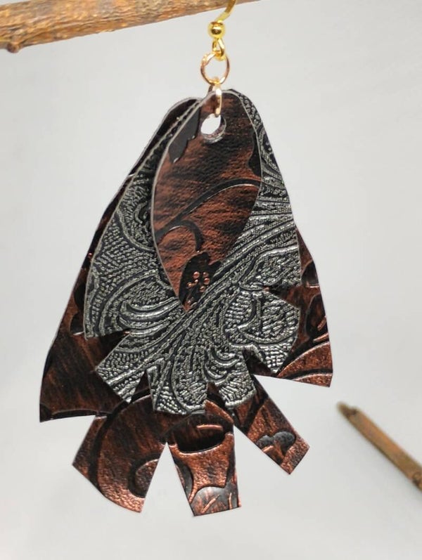 Hand made & cut pleather earrings in a unique shapes, tripled up to create a layered look. Earrings are on a Sterling Silver French Ear Wire.